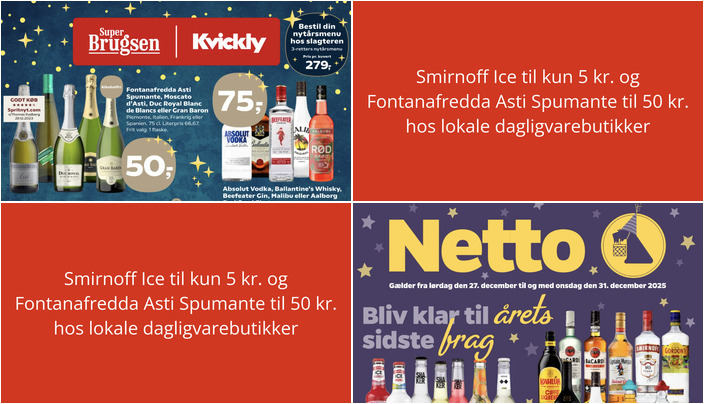 Netto har et skarpt tilbud på Smirnoff Ice, Shaker eller Mokai, hvor du kan få 27,5 cl for kun 5 kr. Der er en begrænsning på 24 stk. pr. variant pr. kunde pr. dag. Tilbuddet gælder fra lørdag 27. december til onsdag 31. december.