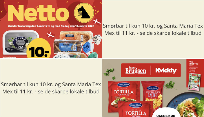 Hos SuperBrugsen kan du få Santa Maria Tex Mex-produkter til kun 11 kr. pr. stk. Der er flere varianter at vælge imellem, men der er et begrænset parti. Tilbuddet gælder fra fredag den 6. marts til torsdag den 12. marts.